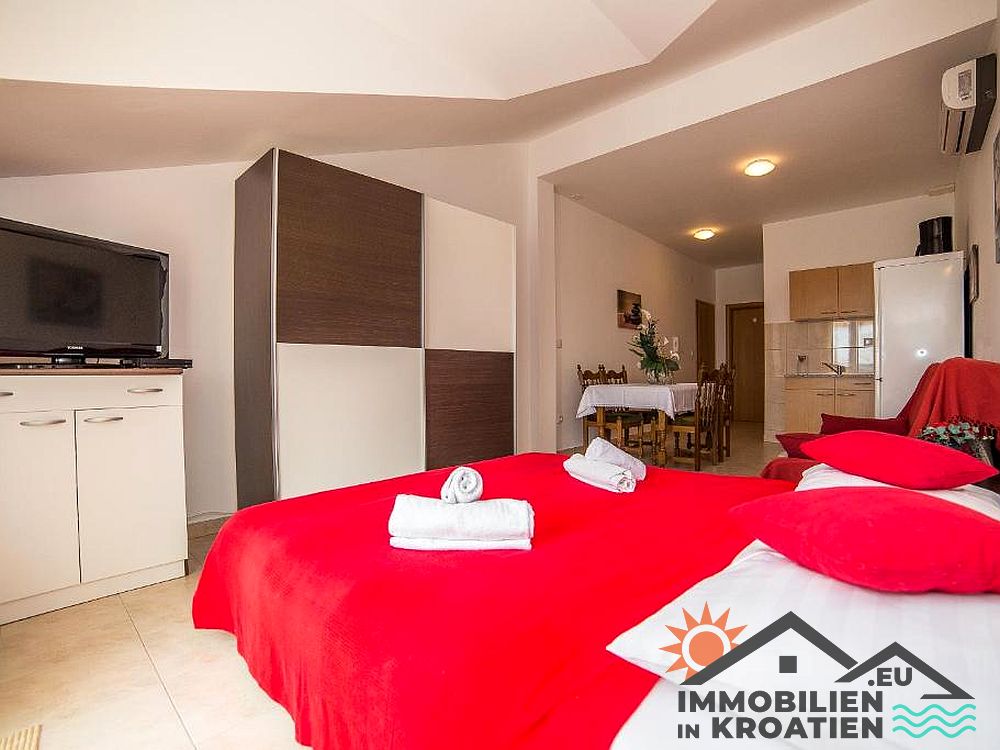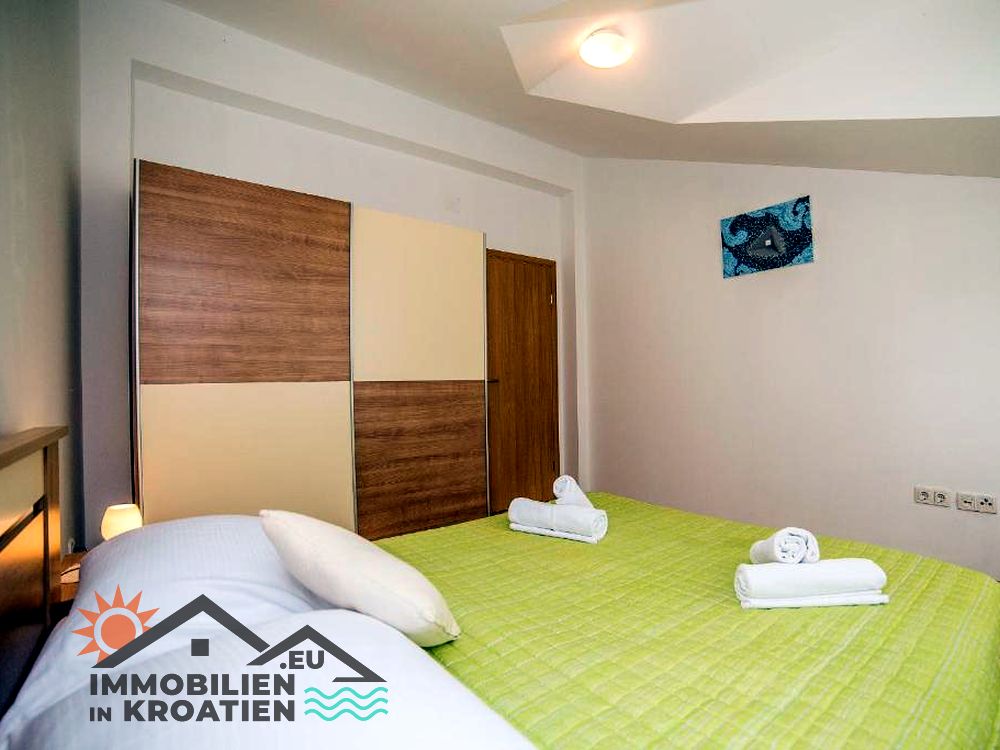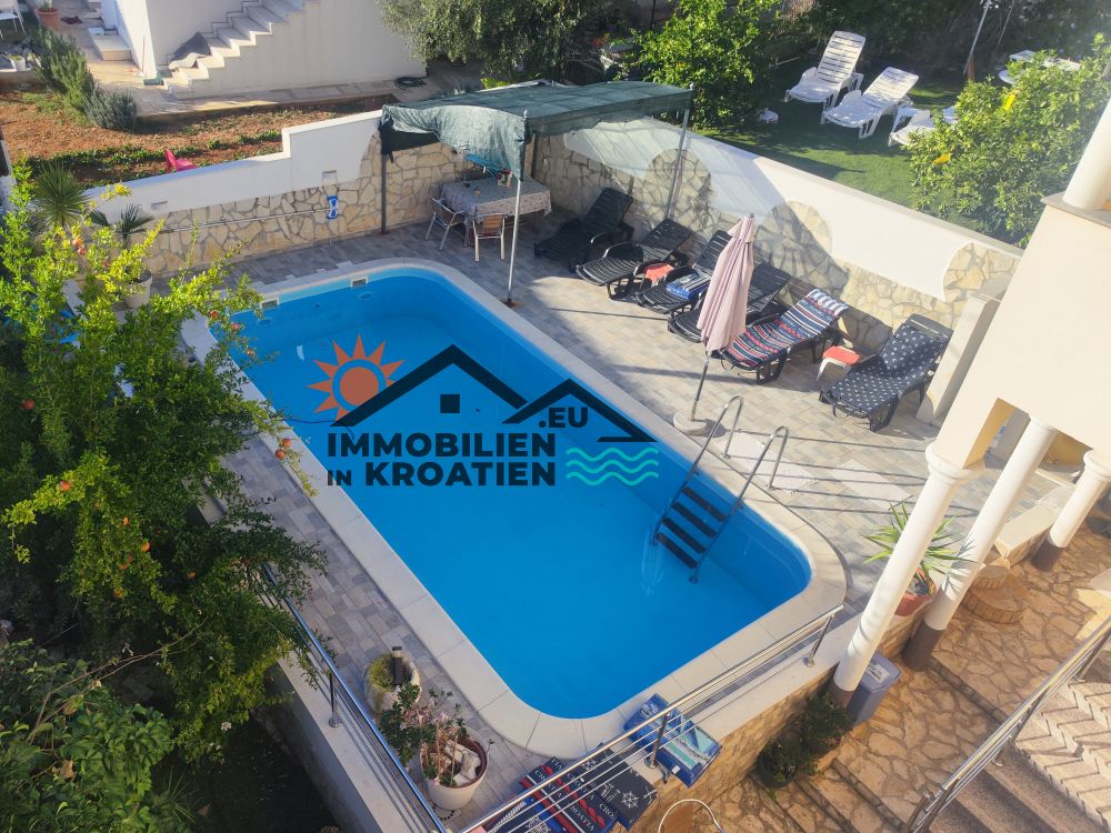 Vor der Villa befinden sich vier Parkplätze. Alle Wohnungen bieten einen wunderschönen Meerblick und sind 10 Monate im Jahr touristisch belegt! Sie erreichen die Altstadt von Trogir bequem zu Fuß, und die Nähe zum Flughafen Split ist ebenfalls ein großer Vorteil.